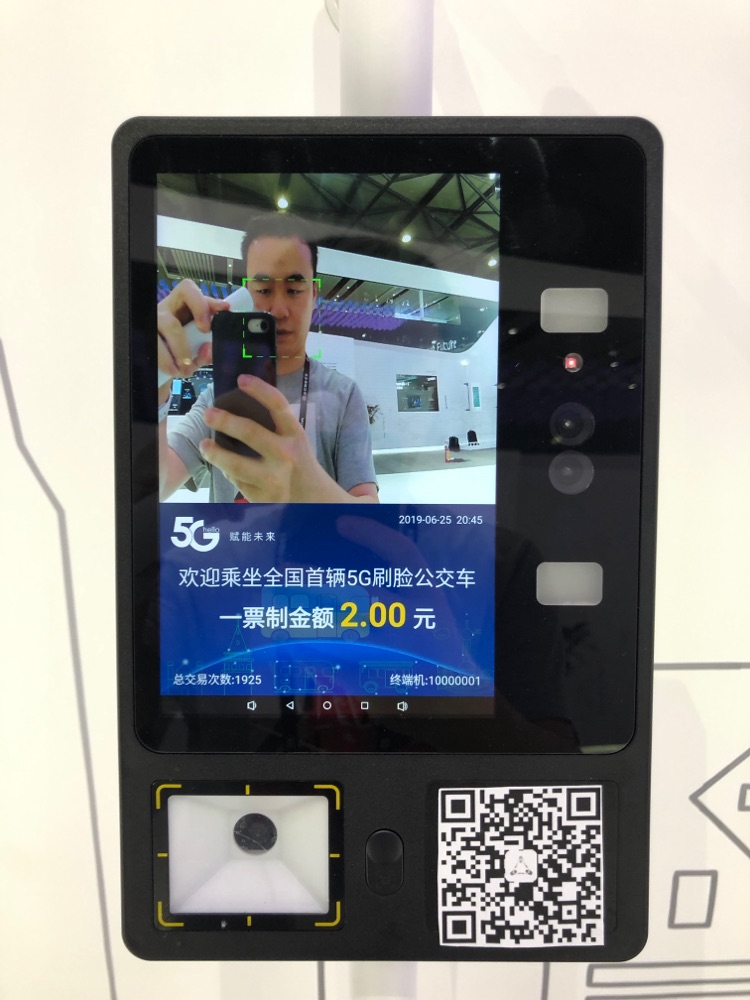 現場還有一個全國首輛5G刷臉公交車的刷卡機,只要兩塊錢,和上海的公交票價一致,我掃碼後提示我要下載一個應用,我暫時放棄了,明天再來體驗。