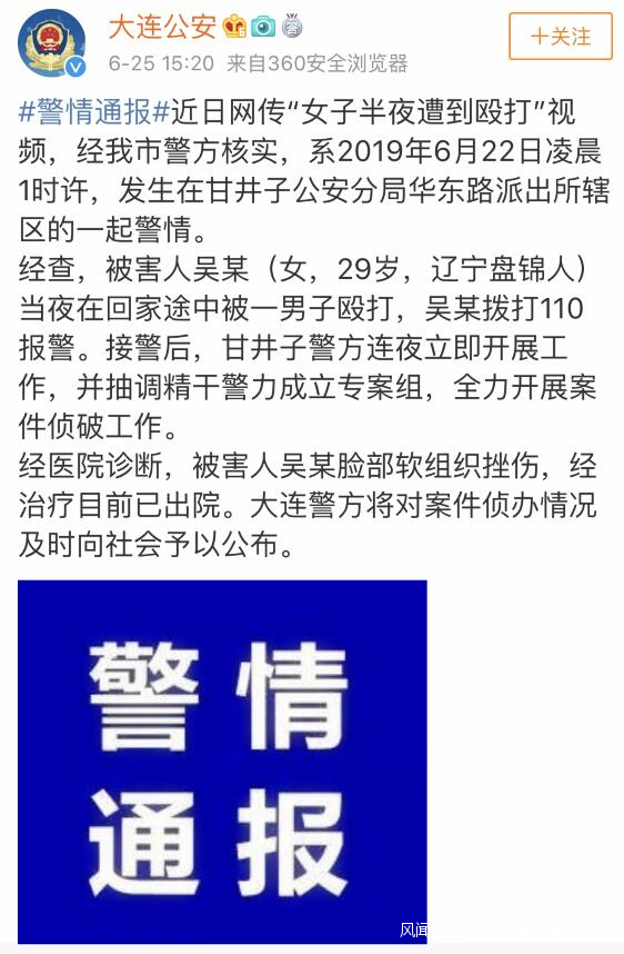 今天下午,大連警方通報“女子半夜遭到毆打”情況,其中,女子傷情為“臉部軟組織挫傷”,引來不少網友質疑。