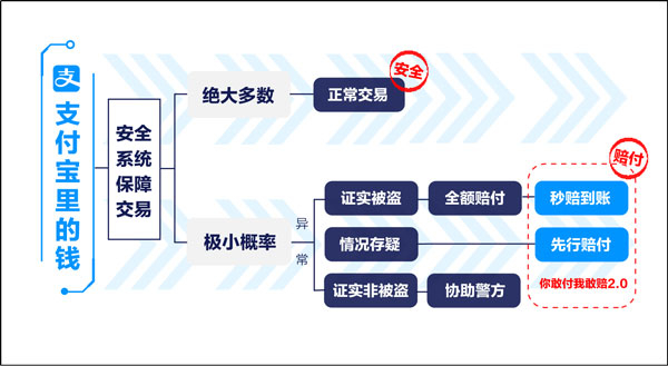 6月25日,支付寶宣佈 “你敢付我敢賠”正式升級為2.0,推出“定案秒賠”和“疑案先賠”的1+1服務。如果賬户被盜,經AI核實後能全額賠付“秒到賬”。同時,支付寶率先在行業承諾:如果情況存疑,無法核實是否被盜,則會“先賠再説”,優先保障用户權益。