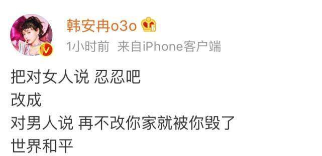 只不過剛剛結婚才3天,韓安冉就親自曝出要和自己的老公小豬離婚了,在微博中她也是把所有的不滿用文字給表達了出來,而且自己承認了必須要離婚。
