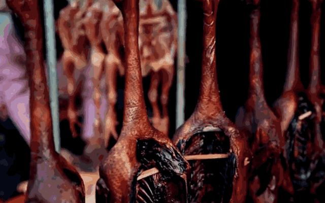 **對,鴨肉味兒。**這個看似必然的東西如今都很難在普通餐廳吃到了。這不是什麼獨門秘籍,逐漸在市場消失的邏輯也很簡單:餐館裏是要走量的,所以大多數情況下,買進來的都是成箱的凍鴨。一是不知道凍了多久了,二來化凍的過程就是味道流失的過程。再加上為了控制成本,不會買特別肥美的鴨子,所以一歲以內,3斤及以下的公鴨較為常見。這種公鴨,一來油少,滷製過程不用擔心撇油出現的人工和時間成本,二來滷製速度快,不用過油不用收汁兒,時間夠了就出爐。自然吃不出“活”肉的感覺。