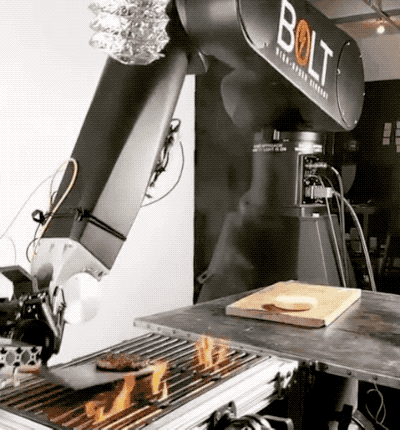 Giralt 拍攝過程中另一個得力助手就是這個機器人。他説,沒有這個機器人,是不可能拍出那些效果的。Giralt 採用的是高速運動控制機器人,設定好之後,它就可以不斷重複非常精確的動作。有了它,攝像機才能精準地追蹤食材的運動,不會錯過任何令人口水直流的角度。