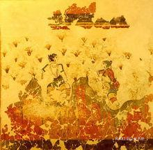 畫中年輕的國王正在百合花叢中主持祭祖活動