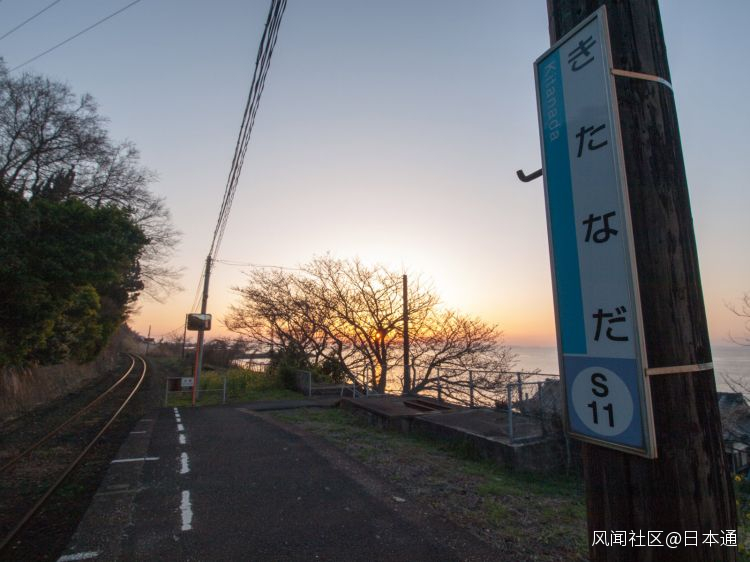 喜多灘站恰好位於愛媛縣大洲市與伊予市邊境的“JR予讃線”上,同樣可毫無遮攔地欣賞瀨户內海。在黃昏落日時分到訪這裏,夕陽沉入海面,在瀨户內海的水波粼粼中,世界歸於一片寧靜。
