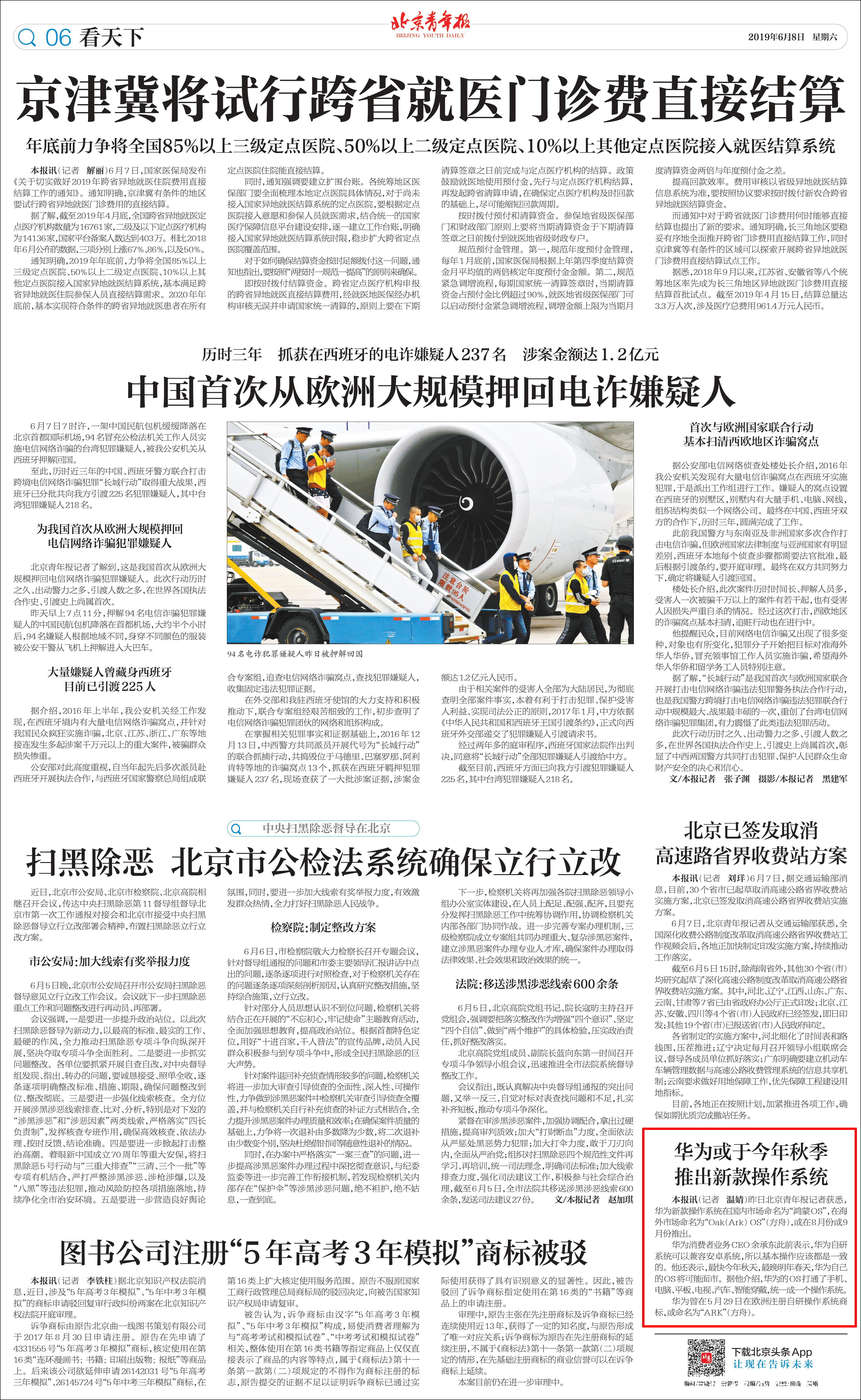 6月8日出版的《北京青年報》報道稱,昨日北京青年報記者獲悉,華為新款操作系統在國內市場命名為“鴻蒙OS”,在海外市場命名為“Oak(Ark) OS”(方舟),或在8月份或9月份推出。
