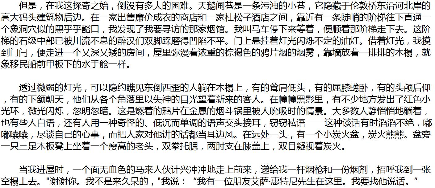 《福爾摩斯探案集·歪唇男人》裏對英國倫敦的鴉片煙館的描寫