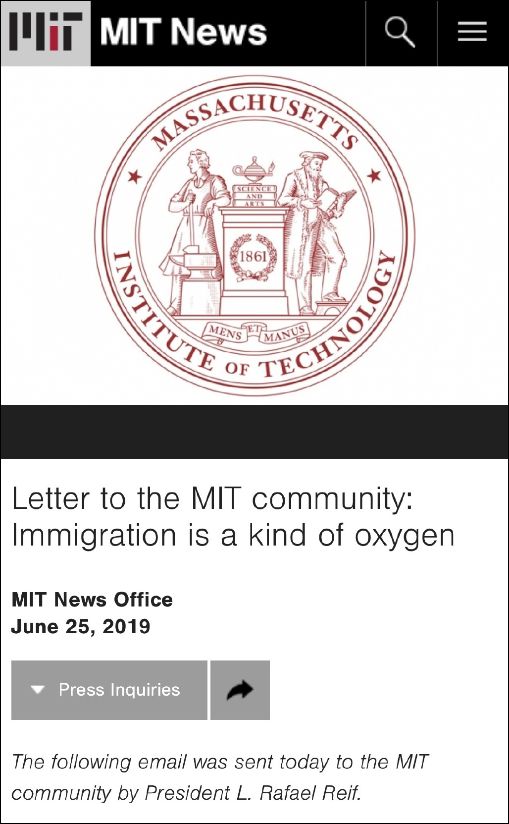 麻省理工學院校長致信全校成員:移民如同氧氣_風聞