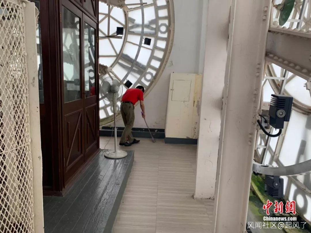 每週開鐘上發條3次,每次要4人操作1小時左右才能完成。“不過後來在技術革新後,大鐘就裝上了電動馬達,上發條的工作只需要15分鐘就可以完成。”不過前一段時間,大鐘有幾個零件送回了英國原廠維修,現在我們聽到的都是電子報時。