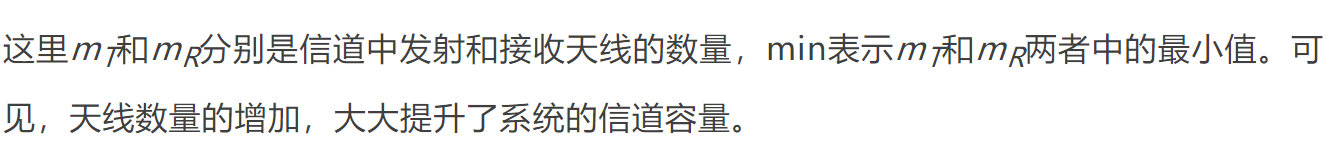 而MIMO的一般解釋要涉及無線電信號的基本傳輸模型,這裏我就不展開講解了。只是給出當接收和發射天線都比較多時,其信道容量的常見的估計公式:
