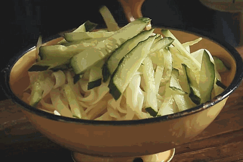 把平日熱食的**餄餎面涼拌,**是銅川人夏天的怯暑的秘密。面需蕎麥麪,要勁道不要粘連。配料要陝西最常見的油潑辣子、黃瓜、香油和醋的組合,這是三秦美食的尊嚴。