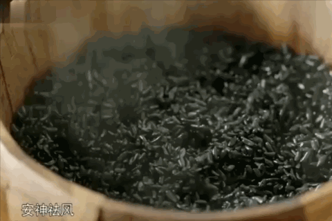 杭州人有夏天吃烏米飯驅蚊的傳統,剛立夏就要買南燭葉做烏米飯。綠色的南燭葉磨漿過濾後,用漿液浸泡糯米三小時後入鍋蒸制,這就是原始版的烏米飯。甜烏米飯是小吃,鹹烏米飯才是夏天的主食。蒸好的烏米飯與鹹肉、筍丁和豌豆混炒,這也許就是杭州人夏天不招蚊子的原因。