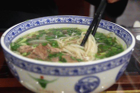 天氣變熱,街上的蘭州人民離奇消失,他們都鑽進巷子吃漿水面來致敬夏天了。