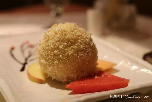 還有美利權的招牌****炸雪糕,外面用麪粉裹着炸出來的脆皮,入口外酥裏涼,讓你感受什麼叫真正的童叟無欺冰火兩重天。