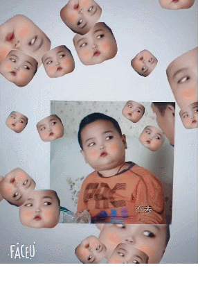 後來我們在國內App走訪了一圈,發現也有類似的baby face特效,要説魔性的還得數這一個,為啥?因為它除了把你的臉弄得Q彈Q彈回春八歲,還輔以各種亂飛的人臉,讓院辦不禁想起了被00後惡魔表弟手摔手辦的經歷: