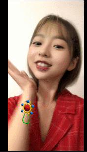 我們嘗試把這個AR濾鏡加在了天使寶貝的一張JPG圖上面,嗯,是個有血有肉的表演了: