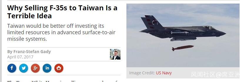 但有意思的是,倒是《防務新聞》、《外交政策》等媒體先後發表了智庫專家和國防部官員的文章,解釋為何不應該向台灣出售F-35,似乎和這些媒體同時大呼“保衞民主燈塔”口號的態度有着180度的差距呢……
