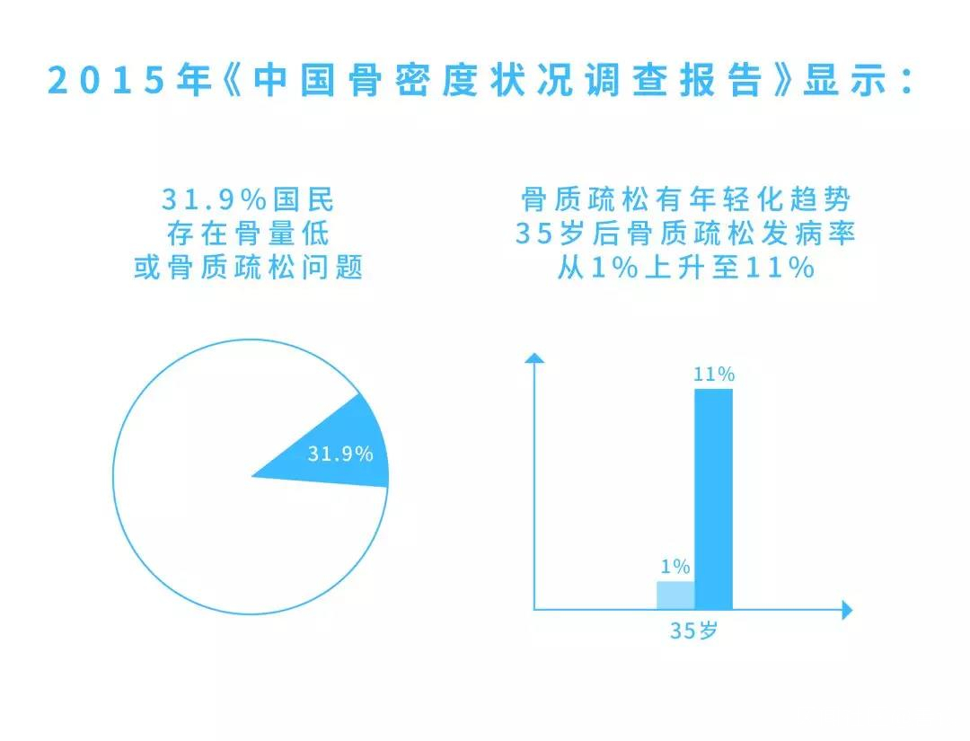 《骨質疏鬆症防治中國白皮書》指出,目前我國至少有 6944 萬人患有骨質疏鬆症,同時, 2.1億 低骨量人羣存在骨質疏鬆症的風險。
