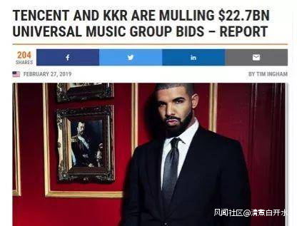 根據路透社的説法,這起荒誕的新聞,起源於中國深圳的騰訊公司或將以大約300億美元的價格購入美國大型唱片公司“環球音樂”準備出售的最多50%的股份。
