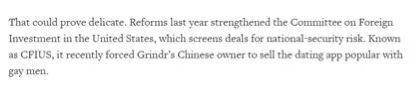 不過,路透社卻並不認為他們所描述的這種魔幻的場景是“杞人憂天”,因為美國政府前不久就已經迫使一家中國公司出售了該公司對美國知名同性戀社交軟件Grindr的所有權,給出的理由就是擔心該軟件的數據被中國政府掌控,並被拿來“危害”美國的“國家安全”。