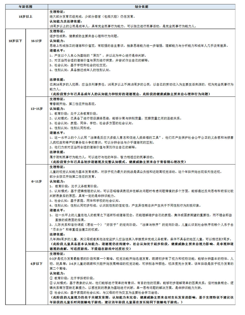 對遊戲內容的判定採用“負面清單”的形式,以排除不當要素的方式對遊戲內容進行適齡劃分。根據我國出版和未成年人相關法律規定,將遊戲適齡提示以18歲為界進行劃分。