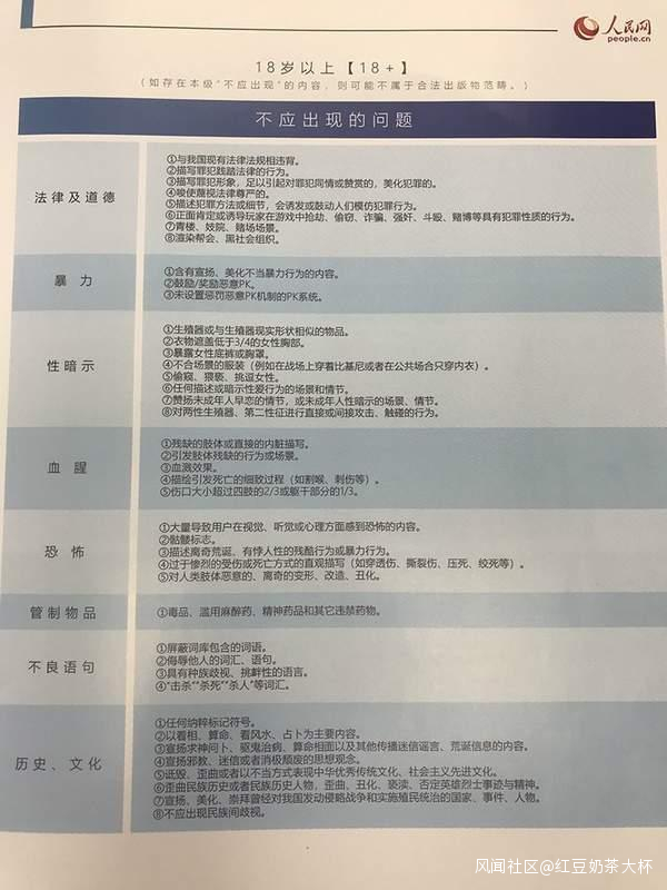 以18+為例,草案從是否違反法律道德、是否涉及暴力血腥恐怖、是否涉及性暗示、是否涉及管制物品、不良語句和歷史文化問題等幾個方面,列出了遊戲產品中需要劃分適齡用户乃至可能違規的內容。