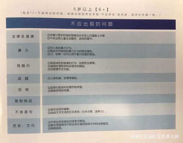 如果該級別中出現本級“不應存在”的內容,則評價應升高一級。而“18歲以上”如果存在本級不應出現的內容,則有可能不屬於合法出版物範疇。