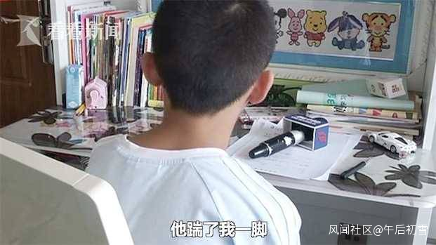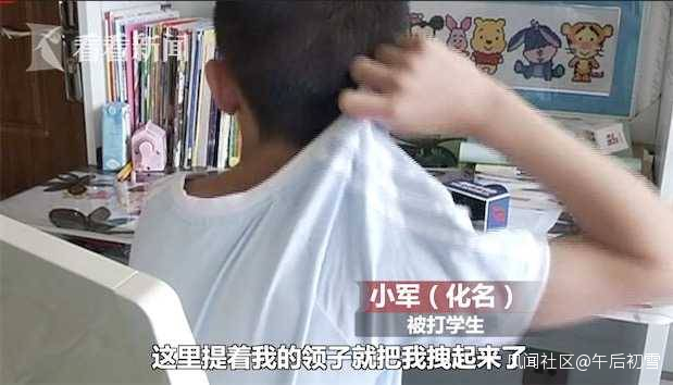 據瞭解,孩子叫小軍(化名),讀五年級,當時班級里正在上自習課,管紀律的田老師從桌子上揪住小軍的脖子,把小軍甩在了地上。之後,田老師又提住小軍的衣服後領,把小軍推出了教室……