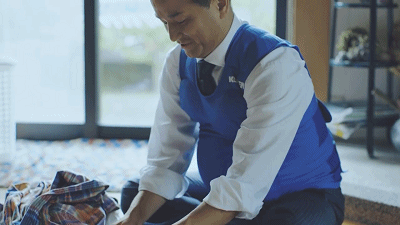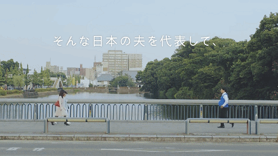 在三位知事都換上了這個孕婦背心後,短片中出現了這樣一句話:日本丈夫不做家事和育兒是世界第一。