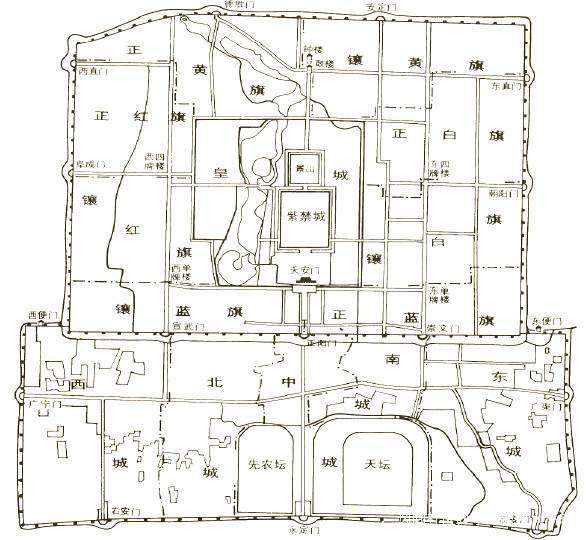 清代的北京城分為內城和外城,滿漢分城而居,漢族只能住外城,內城由八旗佔領。八旗軍户不事營生,由國家恩養,只能當官或當兵。1882年估計,內城旗人約44萬餘人,加上僕役,佔北京城人口的62%。