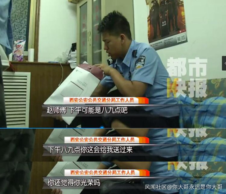 事發兩天前,6月26日凌晨,陝西西安一位出租車司機趙師傅拾金不昧,到西安市公安局公交分局上交撿到的公文包時,遭到值班輔警的埋怨。