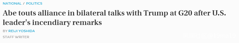 除此之外,安倍還就此次峯會表示,“在今天開始的G20大阪峯會上,我希望能夠在世界經濟的持續增長等國際社會需直面的話題中做出貢獻,以此(向國際社會)發出有力信號。如果沒有日美的合作,這就無法實現。”
