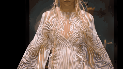 2011年,荷蘭設計師 Iris van Herpen 的服裝首秀採用了3D打印技術。柔軟的服裝似乎和硬邦邦的3D打印產品沒有什麼關係,但是在那年的巴黎時裝週後,van Herpen 的設計就被《時代》雜誌評為年度最佳發明。包括紐約大都會藝術博物館在內的許多博物館都收錄了她的創作。