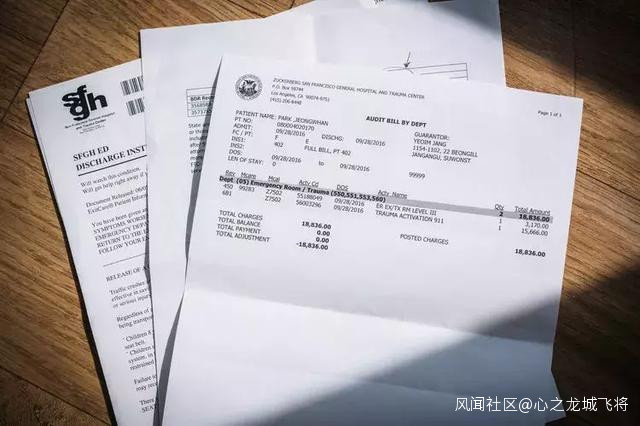 賬單寫的清清楚楚,他們在扎克伯格醫院就診3小時,欠下18836美元就診費。