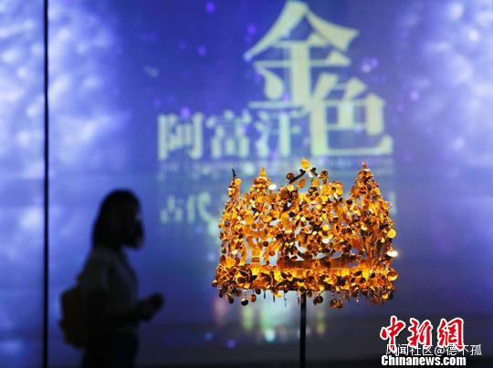 “金色阿富汗——古代文明的十字路口”展在南京博物院特展館開幕。 泱波 攝 “阿富汗位於歐亞大陸十字路口的地理位置,很大程度上造就了它多種文化交融的特色。”南京博物館工作人員告訴記者,該院在策劃時,數易其稿,最終選取“金色阿富汗”為主題,突出阿富汗在歐亞古代文明十字路口上如“金子般閃耀”的地位,以及“黃金之丘”蒂拉丘地閃閃發光的黃金製品。