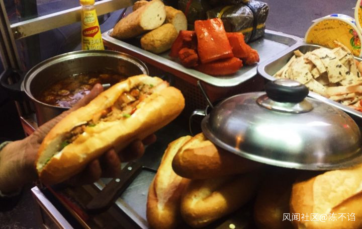 華燈初照之時,這裏的一切都被美食喚醒,最美好的浪漫也不及和路邊攤的邂逅。而意想不到的是當晚的邂逅的則發生在了剛吃過一頓飽餐的我,和一支東南亞風味的法棍之間。