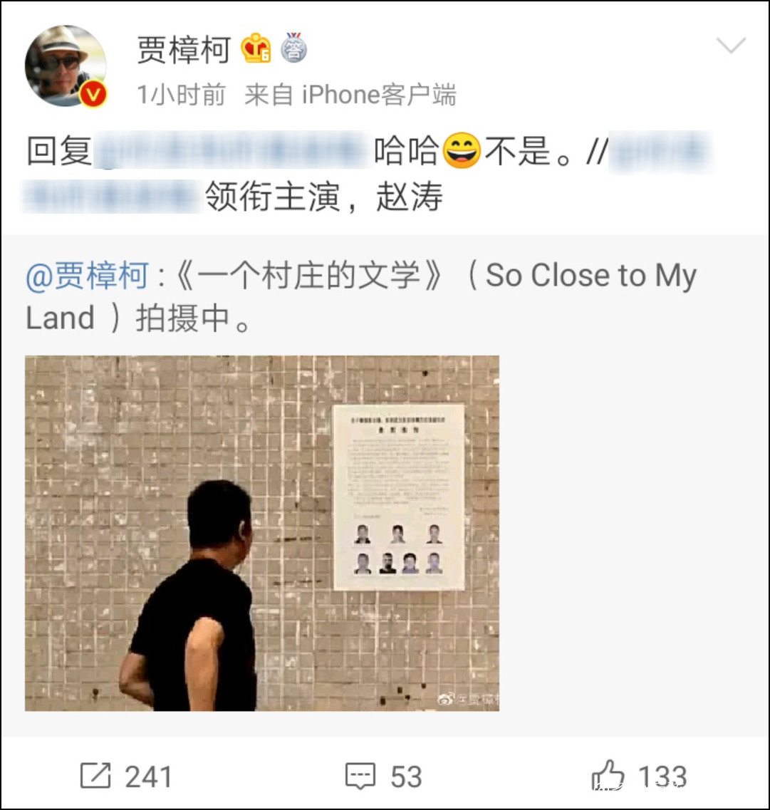 賈樟柯新片《一個村莊的文學》拍攝中,趙濤不是主演_風聞