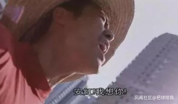 1997年的夏天,帶着黃色草帽、身穿紅色長袖的張藝謀,站在高樓下用一口純正的陝西話呼喊,“安紅,我想你”。