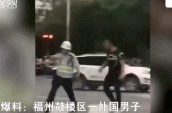 網友爆料:福州鼓樓區一名外國男子騎電動車載着一名中國女子被交警攔下。