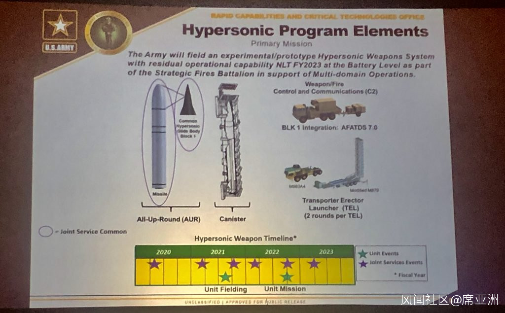 此外,美軍計劃2020財年開始的五年內,投入12億美元,用於發展高超聲速導彈。僅在2020財年,陸軍的預算是2.28億美元。