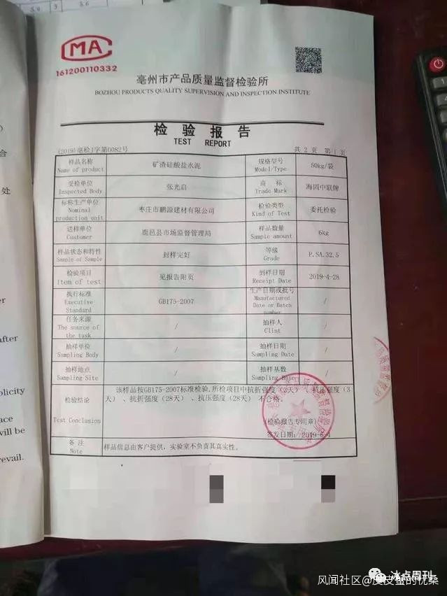 “這表示該批水泥屬於不合格產品。”鹿邑縣市場監督管理局主管稽查工作的負責人告訴中國青年報·中國青年網記者,接到校方投訴後,該局迅速進行抽樣檢測,並依據檢測結果召集校方、經銷商、廠方進行調解。