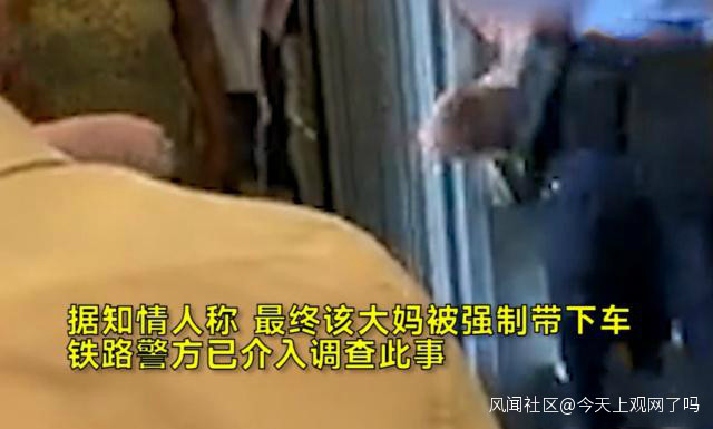 據目擊者稱,鐵警趕到後,強制把大媽帶下車。目前鐵路警方也已介入調查。