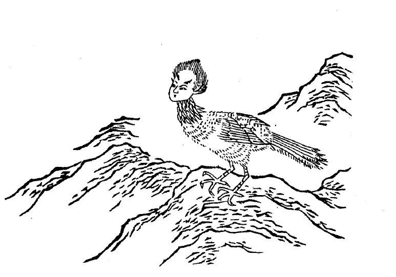 鳧徯[fú xī]:長着人臉的雞狀怪鳥,大凶,傳説此物出現,必起刀兵之禍。《宜春縣誌》就曾載,大明崇禎九年(公元1636年),有人在郴江沿岸發現了鳧徯,是年大旱,五月,皇太極稱帝,改國號「大清」,舉十萬八旗軍南下攻明(《怪奇鳥獸卷》)。