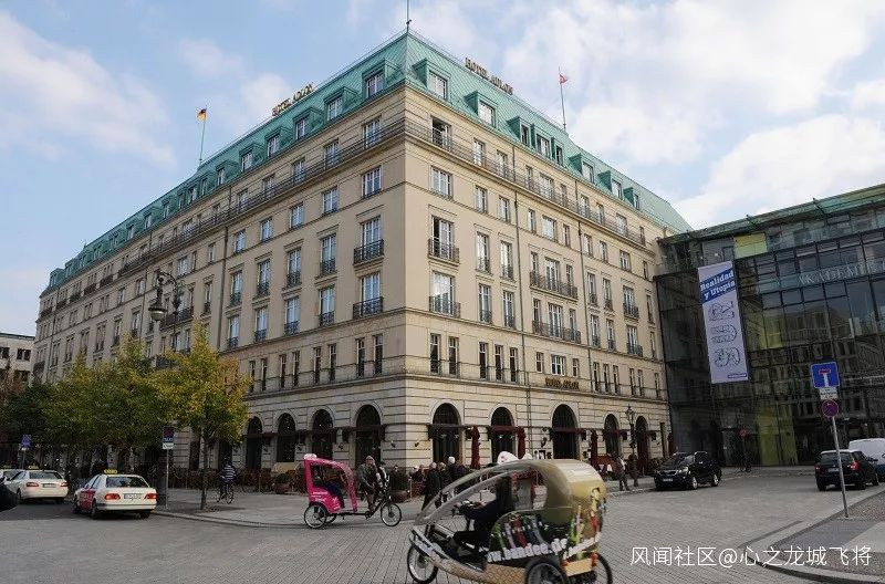 ▲資料圖片:一輛旅遊三輪車駛近德國首都柏林市中心的阿德龍飯店。(新華社)