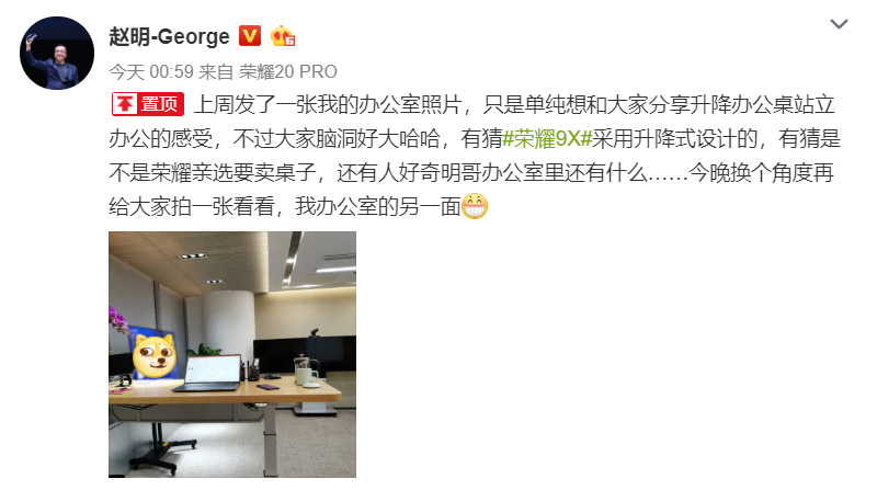 對於“新品類”是什麼,榮耀並未透露過多消息。不過綜合各方面消息,該新品類最大的可能是類似電視的大屏產品。進入2019年,關於榮耀進入電視行業的傳聞就一直沒有間斷過,多方消息都稱榮耀將涉足這一領域。就在昨日凌晨,榮耀總裁趙明在微博發了一張辦公室照片,照片中被表情包刻意模糊遮擋的部分也疑似一款大屏設備,很可能是榮耀將發佈的新品。
