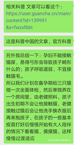 我們計劃在備孕期給三隻貓做一次全面體檢,單獨養在一個房間裏,孕期由我男朋友照料。我也會控制住自己,不會趁他不在撿貓屎吃。
