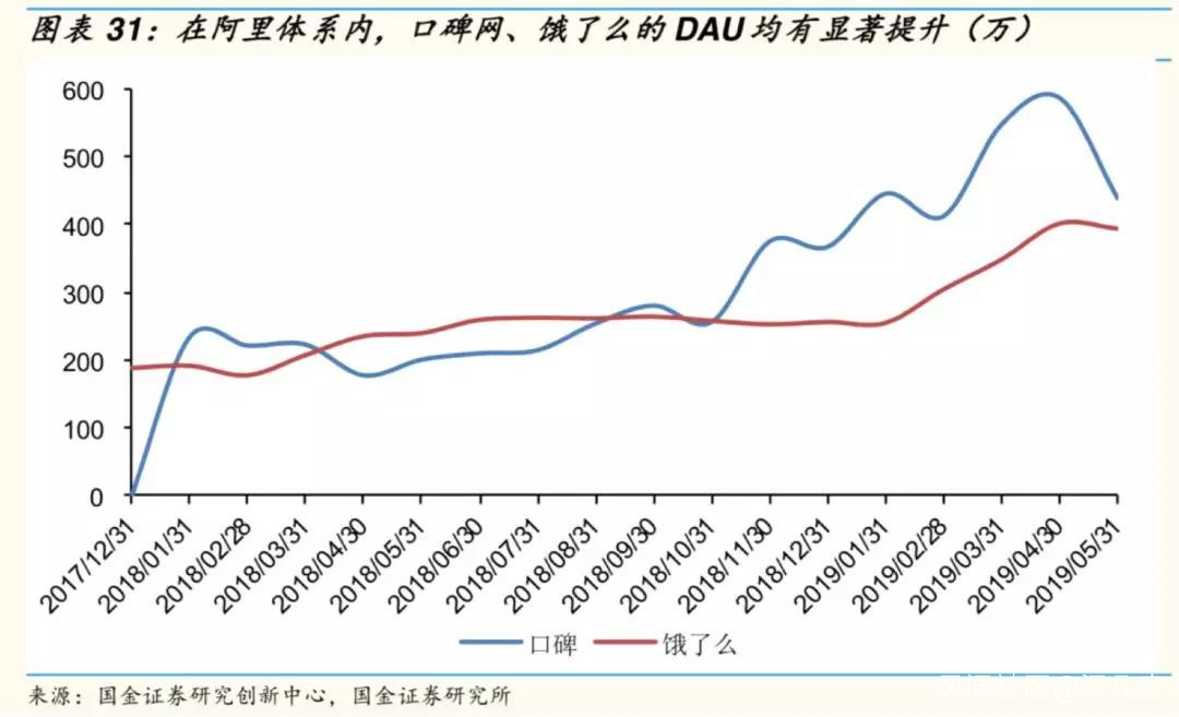 餓了麼在併入阿里之後,DAU 累計攀升了約一倍。