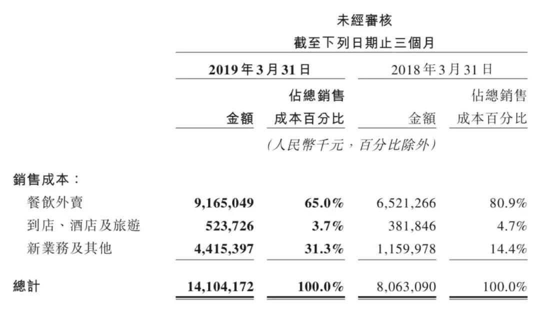 但是如果你去看外賣業務的成本卻可以發現,它的銷售成本佔美團點評一季度總成本的65%。