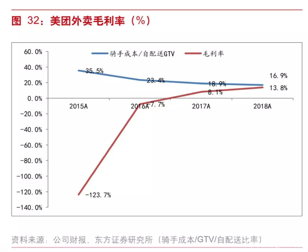 美團點評一季度財報顯示,餐飲外賣分部的銷售成本由2018年同期的人民幣65億元增加40.5%至92億元,主要由於餐飲外賣交易筆數增加而餐飲外賣騎手成本增加。
