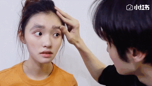 她也會很花心思想各種好玩的實驗,比如請直男給她化妝。