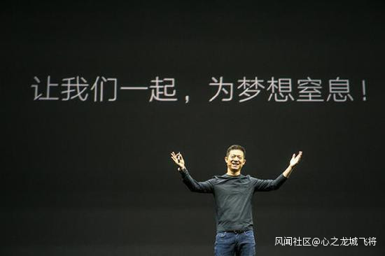 待樂視電視穩定以後,賈躍亭立馬騰出空來折騰手機,並説出那句經典台詞:讓我們一起,為夢想窒息!